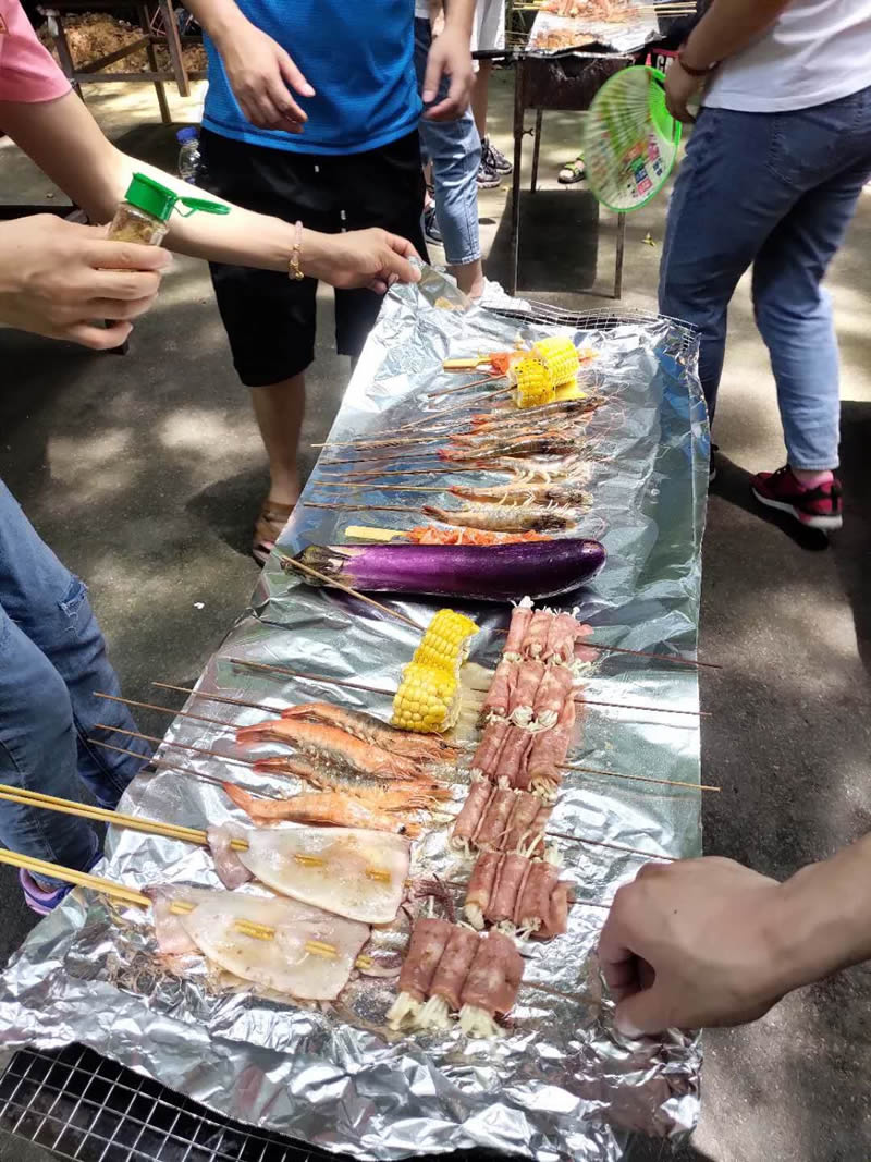 時間來到了中午時分,大家也來到了午餐的目的地,位于位于森林公園南門的入口處的燒烤場,穿過茂密的樹蔭,展現(xiàn)眼前的是一排排長廊式的燒烤場,與周圍森林構(gòu)成了一幅山水的優(yōu)美畫卷。