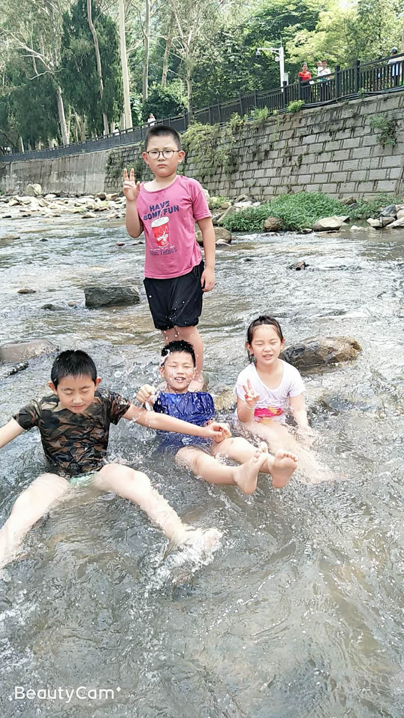 小孩們在大人們的帶領(lǐng)下,在潺潺的溪水中歡樂的玩耍,夏季炎熱的天氣,唯有戶外的清涼能夠帶來一絲絲的暢快。